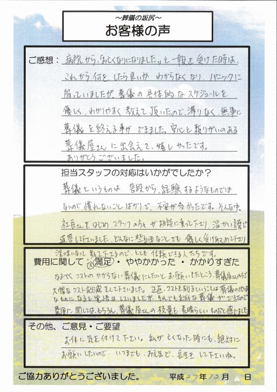 お陰様で残された私たち家族は、悔いなく気持ち良く故人を送ることができました。